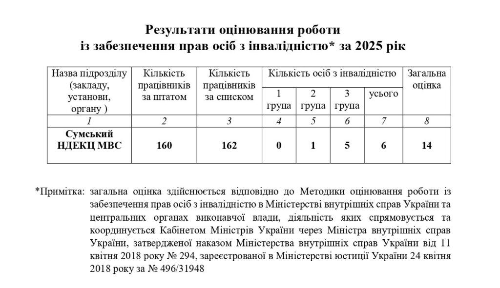 Керівництво Сумського НДЕКЦ МВС активно підтримує загальнодержавну політику у сфері дотримання прав і свобод осіб з інвалідністю, забезпечуючи для них рівні можливості при працевлаштуванні та подальшій реалізації права на працю.