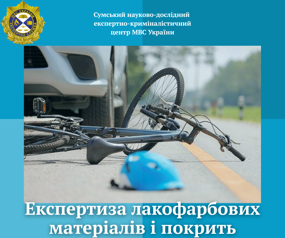 З питань призначення експертизи лакофарбових матеріалів і покрить, а також щодо можливостей отримання відповідей на певні питання, просимо звертатися до відділу досліджень матеріалів, речовин і виробів Сумського НДЕКЦ МВС: (0542) 66-77-26.