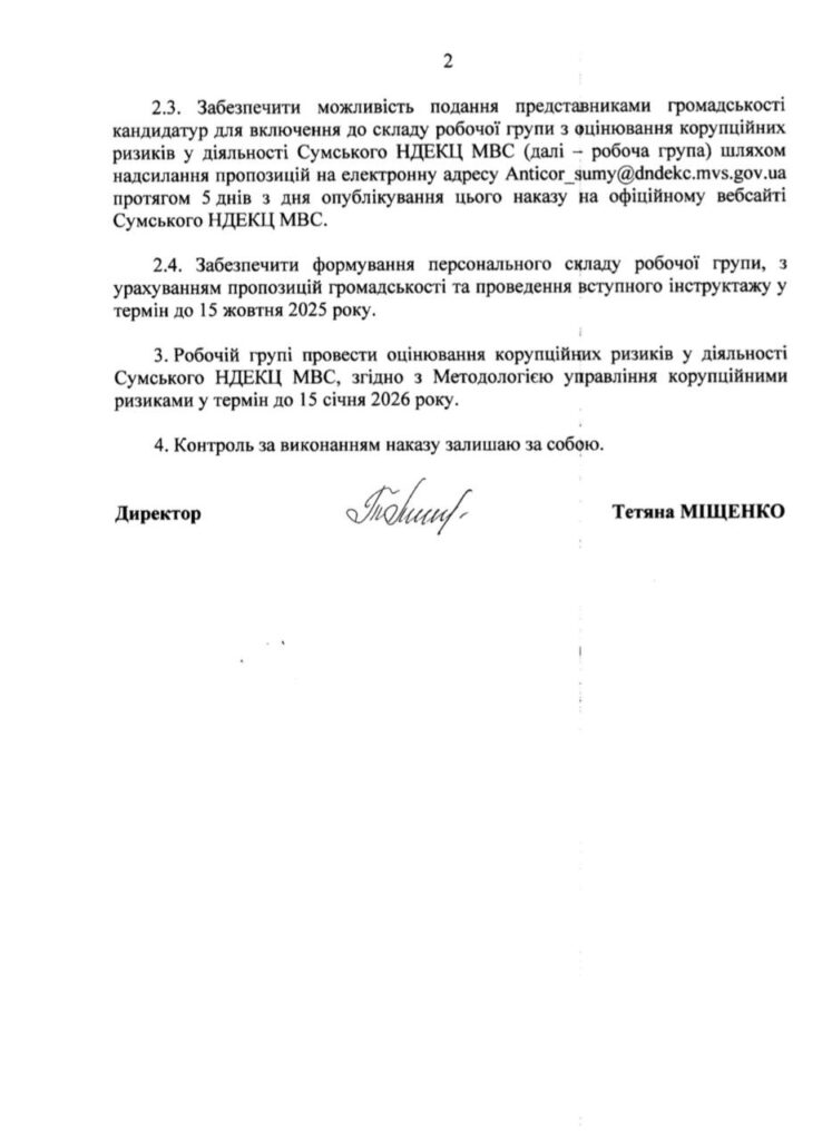 Особи, зацікавлені стати кандидатами для включення до складу робочої групи, мають надіслати пропозиції на електронну адресу Anticor_sumy@dndekc.mvs.gov.ua до 29 вересня 2025 року (включно).